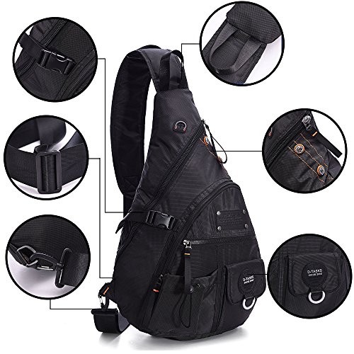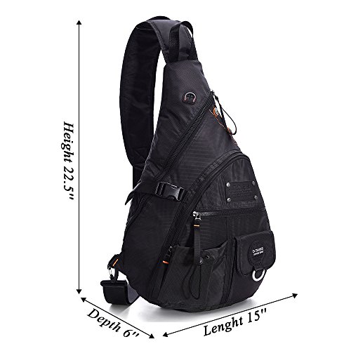 -. Feature : DURABLE: Made by high quality water and tear resistant nylon material, abrasion resistant metal zipper, precise seam and bartack process / SIZE: 22.5*15*6 inch, above 16L capacity, Large space enough for iPad , cellphone, tablet, wallet, keys, pens, small snacks and others daily use. / SOFT PADDED SINGLE STRAP: Soft padded single shoulder strap design offers comfort and flexibility, Convenient to carry. / MULTI POCKETS: Sling bag with spacious main pocket, 9 pockets, well organize and classify your personal belongings. / Stylish, multi-function and practical design. PERFECT for outdoor hiking, camping, climbing, cycling, day trip, vacation, travel, school, shopping.