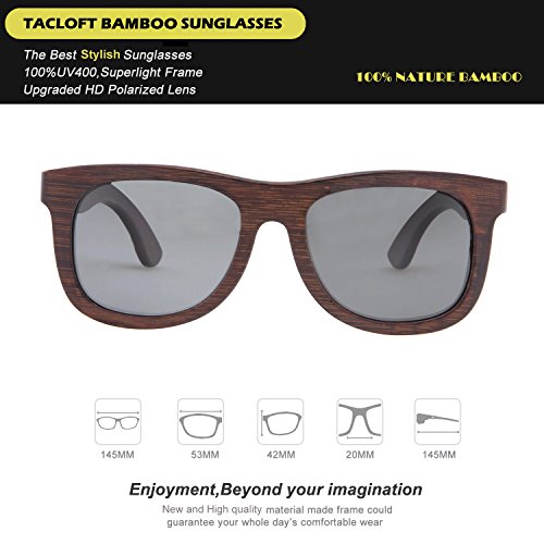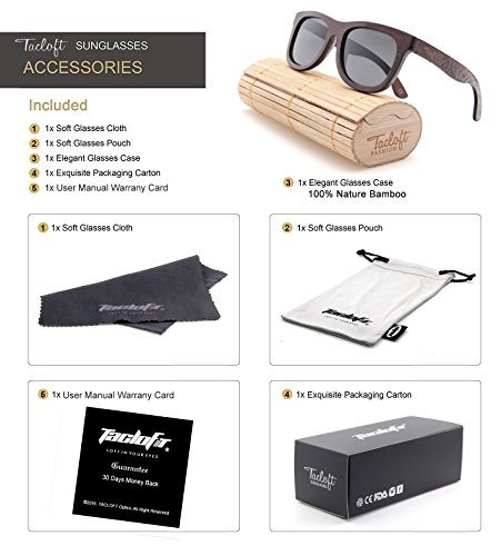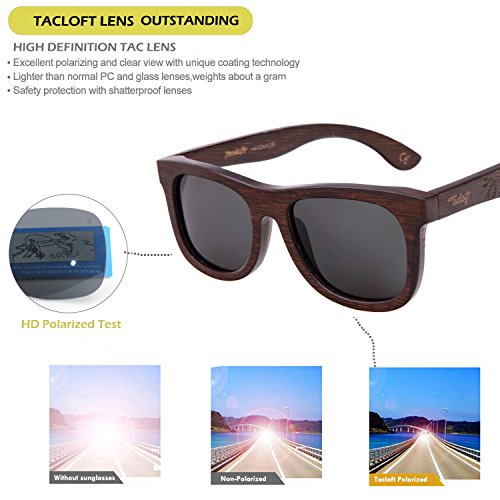 Tacloft Unisex Bamboo Sunglasses for Women Wood Wayfarer Sunglasses Polarized TL9003