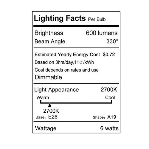 Studio : DORESshop Publisher : DORESshop Product Description Product Description Features Omni-Directional Amber color light 330 degrees to really brighten up a room in a way that wards off shadowy spots. Save Your Money Low energy consumption and save electricity bill compared to traditional bulb. High effectively reduces frequency of changing light bulbs. High-Performance Quality Ensure Your Safety These are LED filament bulbs, reduce the risk of fire hazard, electric shock and personal injury which makes them safe for you and your family. Applications Indoor lighting for Home, industry, commercial and residential such as ,hotel, bedroom, offices or any other places where accent lighting is required. Specifications Type: Dimmable LED Filament Bulb Package Included: 6 pieces of A19 Vintage Edison Bulbs Voltage: 120V Color:Warm White(2700K) Luminous Intensity: 600LM Beam Angle: 330 Degree Lifespan: 30000 hours Warranty: 1 Year Notice 1.As with all bulbs, turn power off before inspection, installation, or removal. 2.The high current will cause attenuation of LED lamp burned or brightness. 3.LED is not suitable for outdoor, water vapor will enter the LED energy-saving lamps inside, when the water vapor condensation, easily lead to short-circuit and damage. 0