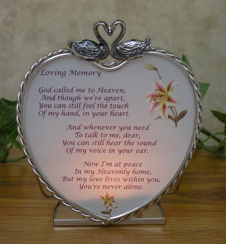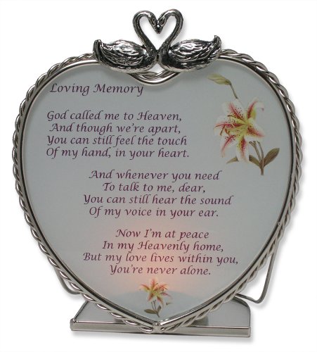 - Message reads: Loving Memory God called me to Heaven, And though we're apart, You can still feel the touch Of my hand, in your heart. And whenever you need To talk to me, dear, You can still hear the sound Of my voice in your ear. Now I'm at peace In my Heavenly home, But my love lives within you, You're never alone.