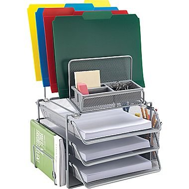 -. Title : Staples All-in-One Silver Wire Mesh Desk Organizer (27642)