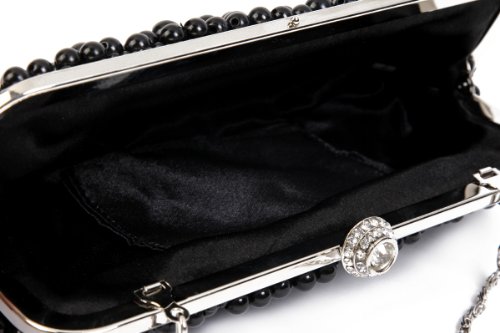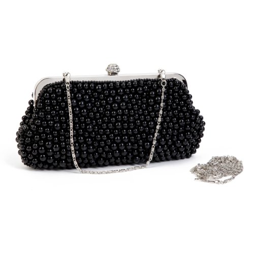 This columnar pearl embroidery clutch has a decorative boarder along the top of the clutch that exudes high class fashion. It flap front has a clasp closure and opens to a functional bag for personal items, cash or cards. The clutch can convert into additional styles with its strap styles: A Short Chain Handbag - allow you to keep your purse close to your body without holding it in your hand -Short Strap Drop: 15.74" (Approx) and A Long Shoulder Chain - This hands free option lets your bag hang low or across your chest - Length Strap Drop: 47.24"(Approx).