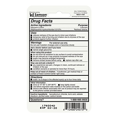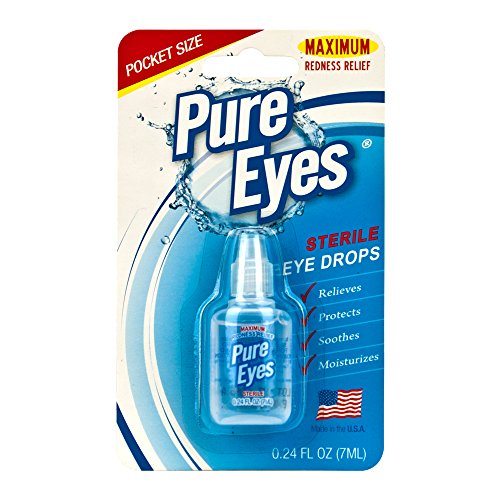 -. Title : Pure Eyes Sterile Maximum Redness Relief Eye Drops Pocket and Travel Size 0.24 fl. oz. 7ml