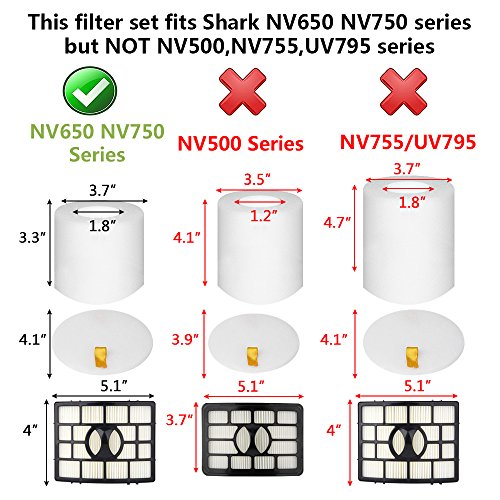 Colorfullife 1 HEPA Filter + 2 Foam Felt Filters NV650 Kit for Shark Rotator Powered Lift-Away Vacuum Cleaner NV650, NV650W, NV651, NV652, NV750, NV750W, NV751, NV752 Replaces Part # XFF650 & XHF650