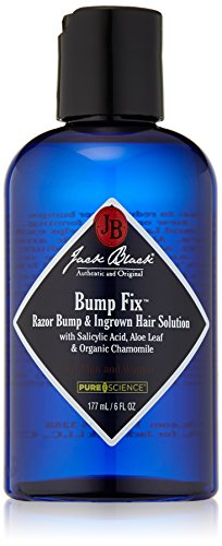 -. Binding : Health and Beauty -. Brand : Jack Black -. Color : One Color -. Department : mens -. EAN : 0885119568036 -. Feature : Contains effective hydrating and soothing ingredients to effectively counteract dryness and irritation / 2% Salicylic Acid dissolves the top layer of dead skin cells and facial oils that can trap hair and block pores / Lactic acid exfoliates, smoothes and softens skin / Certified Organic Green Tea works as an antioxidant to help protect skin against free-radical damage / Certified Organic Chamomile, Aloe and Willowherb help calm skin and reduce redness -. IsAdultProduct : 0 -. Label : Jack Black -. LegalDisclaimer : This product can only be shipped to : United States -. Manufacturer : Jack Black -. Model : 2006 -. MPN : 2006 -. NumberOfItems : 1 -. PackageQuantity : 1 -. PartNumber : 2006 -. ProductGroup : Prestige Beauty -. ProductTypeName : LUXURY_BEAUTY -. Publisher : Jack Black -. ReleaseDate : 2012-08-28 -. Size : 6 oz -. Studio : Jack Black -. Title : Jack Black is Bump Fix Razor Bump & Ingrown Hair Solution, 6 fl. oz. -. UPC : 682223020067