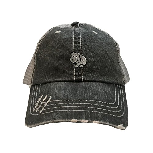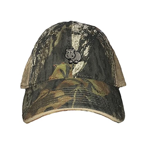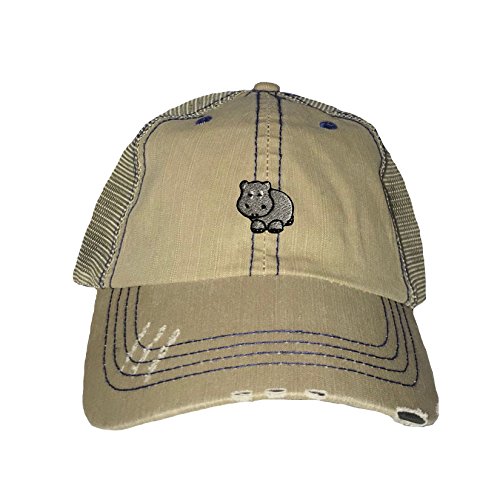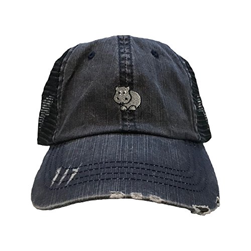 | (Go All Out Screenprinting)/Accessories/Hats/DIRECT FROM USA/Go All Out Screenprinting Adult Hippopotamus Hippo Embroidered Distressed Trucker Cap |