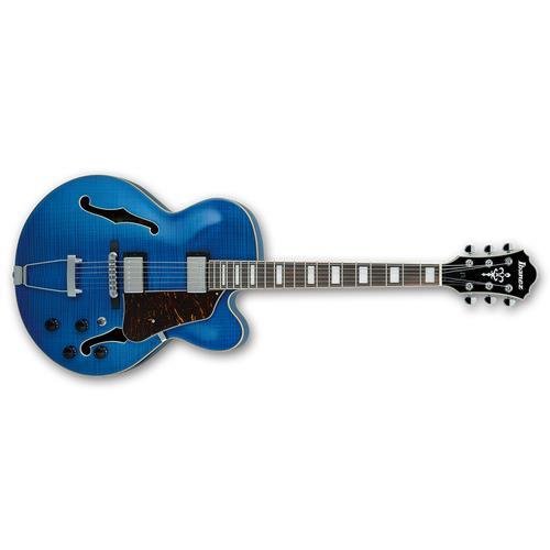 Studio : Ibanez Publisher : Ibanez Product Description The AF75FM Hollow Body Electric Guitar is a traditional arch top jazz guitar that can rock with best of them as well. The hollow body features a flame maple top, back, and sides; and the striking Transpartent Blue finish accentuates the grain of the flame maple. The electronics schematic features Dual Ibanez Classic Elite Humbuckers. The Artcore's combination of quality workmanship and affordability has created legions of fans from diverse genres as blues, country, rock and jazz. Musicians can cover the entire spectrum between the purity of an old school style jazz-box to a hybrid semi-hollow rocker.The neck on the Ibanez AF75FM is carved from a 3 piece Mahogany/Maple laminate into a comfortable, tapered profile which starts at a 21mm thickness at the 1st fret to a full 24mm at the 12th fret. The tapered neck will feel at home in your fretting hand. A bound rosewood fingerboard with luxurious block inlays and 20 frets will facilitate total ease of playability. The AF75 is equipped with chrome hardware that includes an ART1 bridge. Case not included.Order your Ibanez AF75FM Hollow Body Electric Guitar from Sam Ash Direct today with the security of our 45/60 day return/price protection policy and our 85 plus years of experience. 0