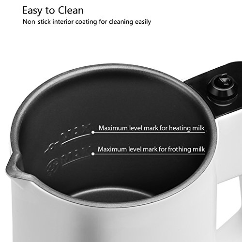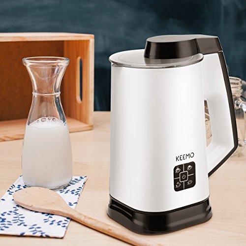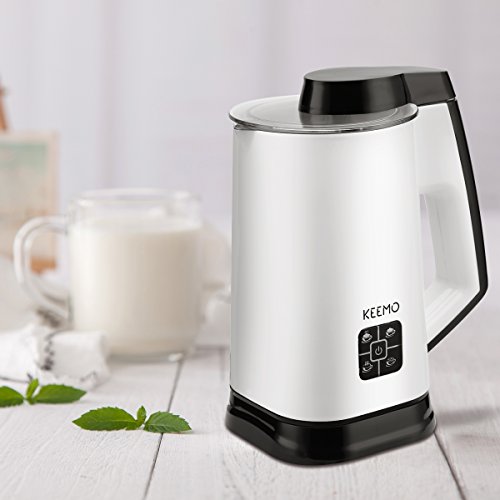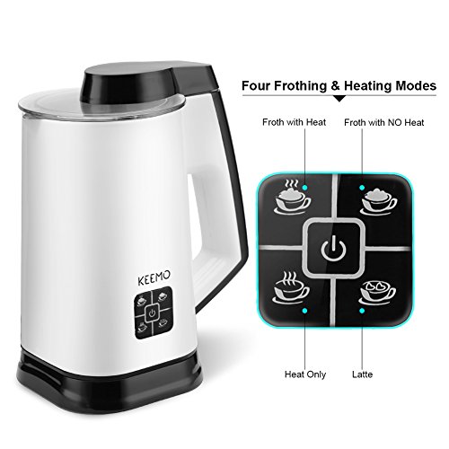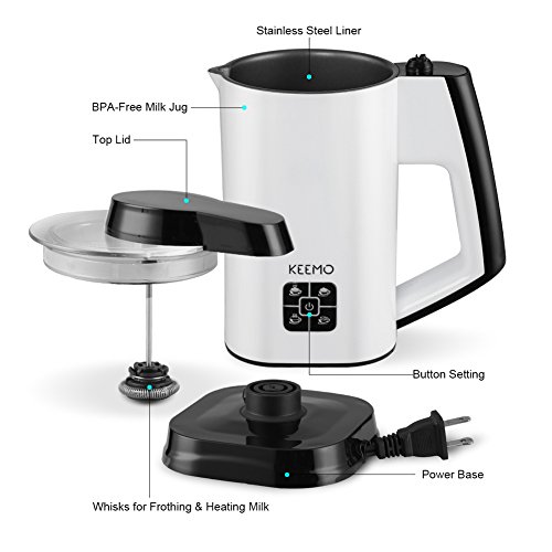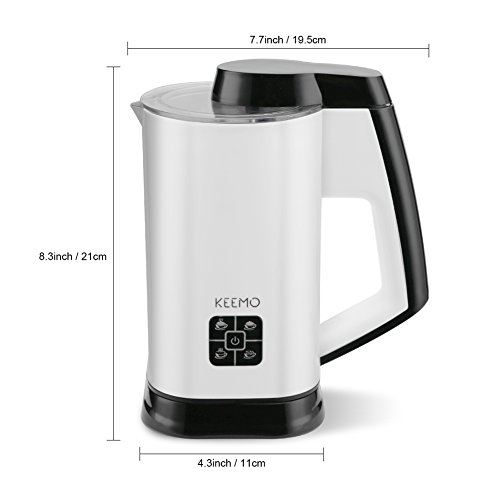 Features: Keemo Electric Milk Frother It creates long-lasting, rich, thick, and creamy milk froth, at the push of a button. Simply add milk into the milk frothing carafe, press start and choose the mode you need, then you can get deliciously thick and creamy froth. You can make hot cold milk froth, hot milk and mix drink by yourself at home, get topping off iced coffee, cappuccinos, or just a cup of hot milk or hot cocoa for breakfast. Specification: 1. Level Mark---The top MAX mark is for heating milk; the lower MAX mark is for frothing milk. With measuring cup helps you add the suitable mount of milk. 2. LED Light Design---Connect the power(Red color); Choose the mode(Blue color) 3. Capacity---Heating Milk(8.9oz / 260ml); Frothing Milk(5.5oz / 160ml)