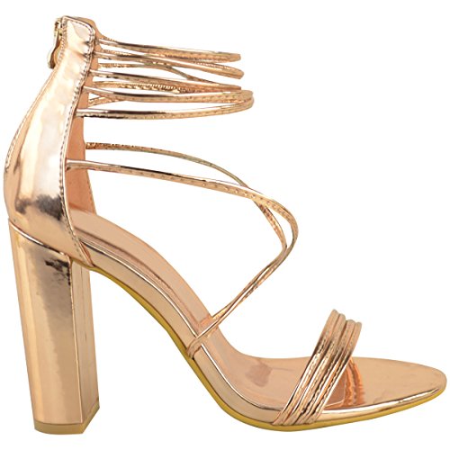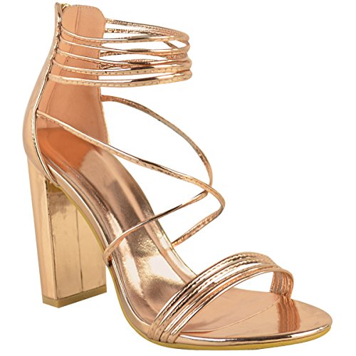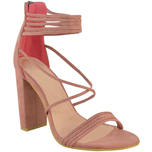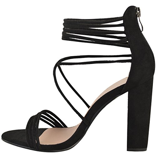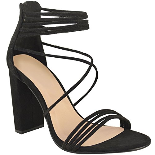 Fashion Thirsty Womens Strappy Block High Heel Peep Toe Chunky Evening Shoes Size
