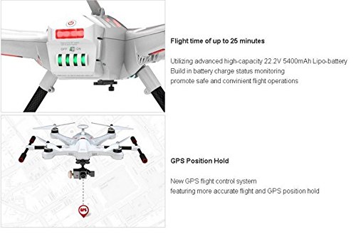 - Feature : Walkera Scout X4 GPS RC Quadcopter Devo F12E ILook+ WHITE FPV2 RTF Support Ground Station / Features: Waypoint mission planning/designated flight Follow me mode/Follow record track back to home Real time telemetry monitoring Ipad holder with back-up power Multi-purpose plane,can change from 4 motors into 8 motors Flight time up to 25 minutes GPS position hold Hyper IOC function Object round flight One key to start/one key to go home/failsafe return to home This is the white color version / Scout X4 Specification: Main Rotor Blade Length: 233mm Length*Width*Hight: 335x335x275mm Weight: 1770g(w/battery) Flying Weight: <2270g Transmitter: Devo F12E Receiver: Devo-RX707(CE)/RX709(FCC) Brushless motor: WK-WS-34-002 Brushless ESC: WST-16AH(R/G) Multi-axis control system: FCS-X4 Battery: 22.2V 5400mAh lipo 2.4G bluetooth datalink: BT-2401A/B(FCC)/BT-2402A/B(CE) Ground Station: GCS (support Android and iOS system) / DEVO F12E Specification: Encoder: 12-channel micro computer system Frequency: 2.4GHz DSSS Output power: ≤100mW Radio distance: 1KM 5.8Ghz video distance: 0.3-2KM( up to transmitter) Image frequency: 32 points Frequency domain: 5645MHz~5945MHz Drain current: ≤200mA ( on 100mW) Stand-by time: 6~12hs Supported battery: 7.4v or 11.v 1600-3000mah lipo battery, NiMH 8X1.2V 1600-3000mAh or 8 pcs of 1.5v dry battery Output pulse: 1000-2000us(1500 Neutral) / DEVO F12E Features: Collected 2.4Ghz control system with 5.8Ghz image transmission function 5.8Ghz real-time video display Professional 12 channels FPV radio Apply to multi-rotorhelicopter airplaneglider Smooth and exquisite four bearing rocker handle design Innovative profile cater to aerial photography USB upgrade online Skidproof pattern design fulfills comfortable handle Open battery compartment design support 7.4v ~11.1v Lipo battery CVBS video signal output supported 5.8Ghz video signal input supported Support 32 channel to receive 5.8Ghz real-time image