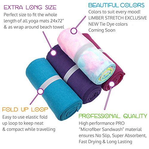 - Feature : EXCLUSIVE TO Limber Stretch ! TWO for ONE SPECIAL offer! / NEW SUPER ABSORBENT, FAST DRYING MATERIAL: Highest quality 'Microfiber Sandwash' textured towels that dry faster than any other towel! / MULTIPLE USES: Your perfect towel for yoga, pilates, fitness, camping, sports & the beach. Also a GREAT dog towel! / INNOVATIVE COMPACT LOOP: Keep neat & compact when traveling with our handy elastic Fold-up Loop. A feature YogaRat, Manduka, Gaiam, Yogitoes & Aurorae don't have / TWO PACK for the PRICE of ONE towel