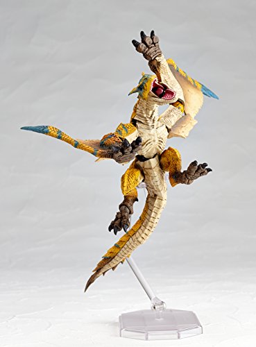 原型制作 海洋堂可動監修&制作 山口勝久企画 ユニオンクリエイティブユニオンクリエイティブ×海洋堂が送る、新アクションフィギュアシリーズ『ヴァルカン-ログ』で『モンスターハンター』シリーズ再始動!可動監修:山口勝久 ヤマグチ式可動が『ヴァルカン-ログ』でも冴えわたる!【“轟竜”ティガレックスが新型ジョイントと蛇腹構造で動く!うねる!飛び掛る!】・ディティール&アクション性能の両立を果たしたモンスターフィギュア。・全身にビッシリと入った鱗や肋骨の浮き上がり、大地を踏みしめる力強い脚など、渾身のディティールをとくと見よ!・全身19個のジョイントを仕込み、多くの可動域を確保したティガレックスが襲い掛かる!・新型ジョイントと蛇腹構造で再現した首と尻尾が、左右に上下に大きく動く! 代名詞とされる突撃攻撃や、長い尻尾を使った回転攻撃、首を大きく振りハンターをなぎ倒す動作も簡単に再現できます。・口はダブルジョイントを採用し、より大きく口を開くことができます。 熟練ハンターですら恐怖する、轟々たる咆哮シーンを再現可能。・付属の同スケールのハンター男剣士とオトモアイルーを並べて狩猟シーンを楽しめます。尻尾部分を差し替え、狩りで切断された状態にもできます。・エフェクトパーツは砂色に塗装し、ティガレックスとの激しい戦闘で巻き上がる噴煙を再現します。〈通常種〉・黄色い外殻に特徴的な青の縞模様を塗装で再現。ウォッシング塗装により、表面の鱗ディティールが浮かび上がる!Feature