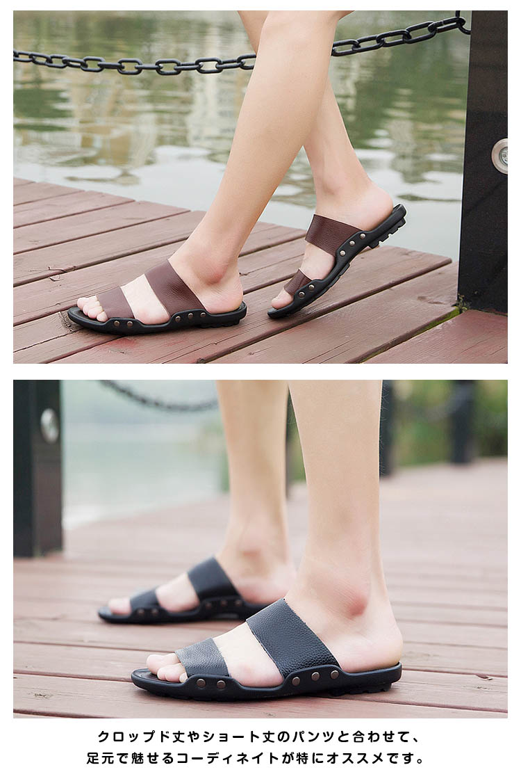 | 夏の定番商品!メンズサンダル★ 足にピッタリとフィットするソールで、とても履き心地が良いです。クロップド丈やショート丈のパンツと合わせて、足元で魅せるコーディネイトが特にオススメです。 | |