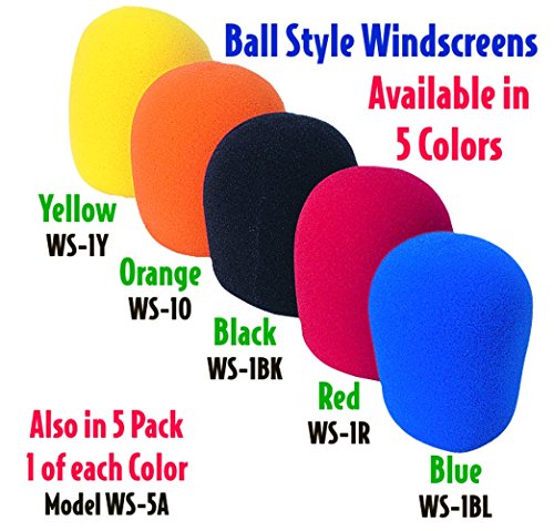 Performance Plus lightweight acoustically transparent foam colored windscreens filter unwanted noise without muffling the sound or affecting its clarity. Slip the form fitted ball over your standard round top microphone to reduce unwanted breath and wind noise without affecting the sound quality. It is particularly effective in reducing pops and ticks caused by talking or singing closely into the microphone as well as reducing wind noise when using the microphones in outdoor applications. Protect your mic against wind interference and vocal spittle with a Performance Plus Foam Ball-Type Mic Windscreen. Designed for normal sized handheld mics similar in design to a Shure SM58, these colorful foam windscreens fit most mics. Reduces the occurrence of wind, breath sounds and popping noises plus keeps your mic clean and last longer. Use with all larger Shure "ball-type"; microphones including the SM58, Beta58A, SM48, and the 565SD microphones. Performance Plus foam windscreens do not use Formaldehyde and other harmful components. Available in black, red, orange, yellow and blue or a 5 pack (Model WS-5A)