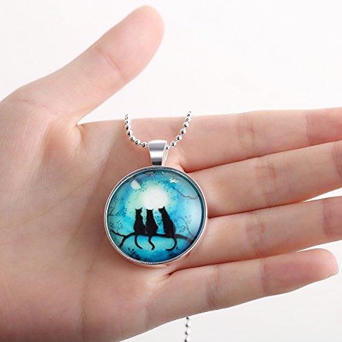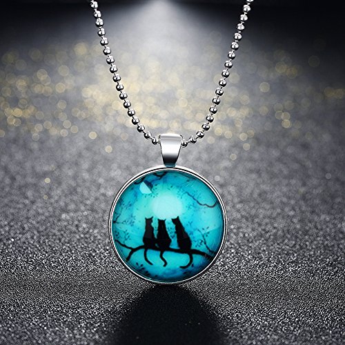 Cos2be Skull Haunted House Necklace Handmade Art Glow in the Dark Necklace (Black Cats)