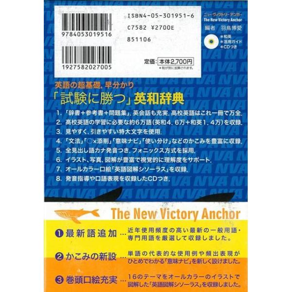 【商品基本情報】 商品名称:ニューヴィクトリーアンカー英和辞典 第2版 CD付 著者/出版社:羽鳥 博愛/羽鳥 博愛 初版発行日:2005/10/26 サイズ:B6判 ページ数:1856 ISBN/JAN:4053019516/4528189381483