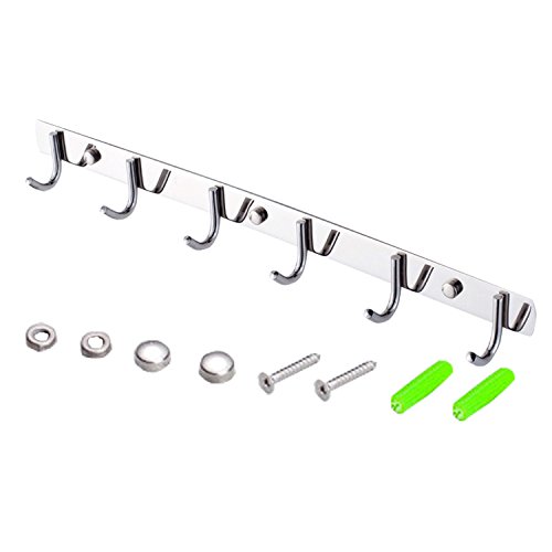WARRAH Coat Rack Hat Rail Wall Mounted Stainless Steel Heavy Duty Hook for Household Bathroom Kithchen(6hooks)