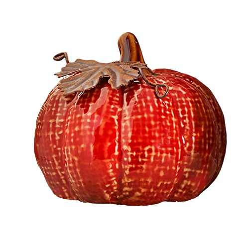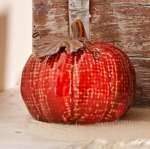 Red Harvest Pumpkin 3.5 x 2 Inch Glazed Ceramic Decorative Tabletop Figurine