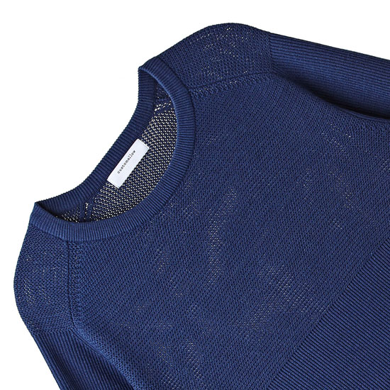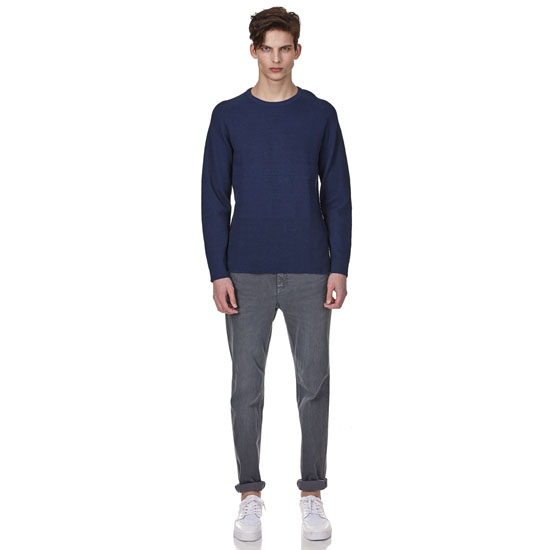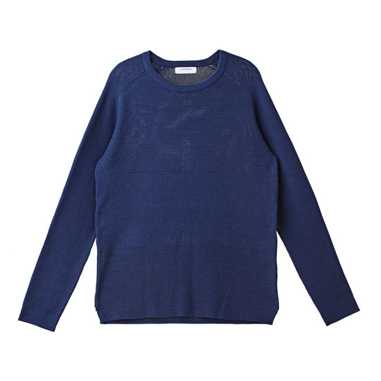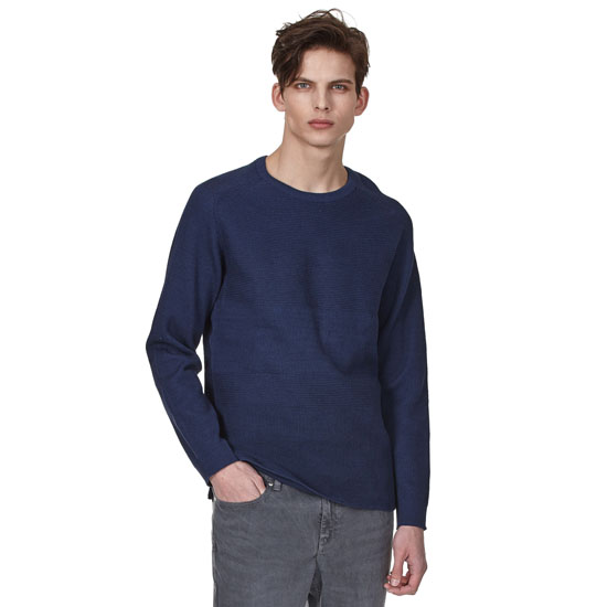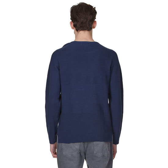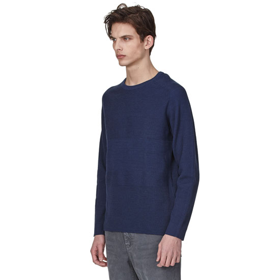 - 조직이 다른 블럭으로 감각적인 외관의 남성 블록 믹스 라운드넥 니트.