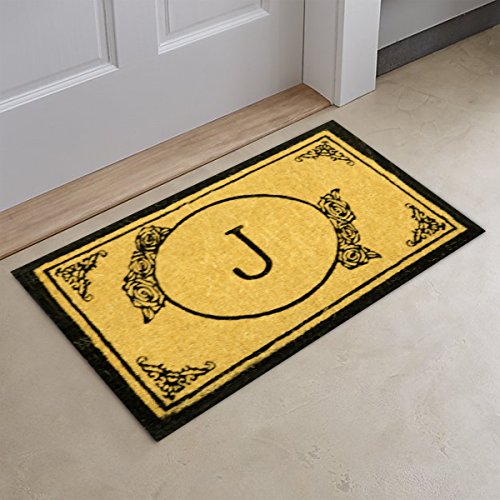 Handwoven Extra Thick Personalized Monogrammed Welcome Outdoor Doormat Coco Coir Door Mat - Various Sizes (18 x 30 Inches, Monogram Letter J)
