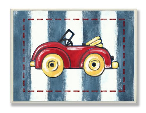 The Kids Room by Stupell Red Convertible on Blue Stripes Rectangle Wall Plaque