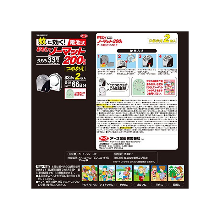 원본상품명: ア?ス製? 蚊に?くおそとでノ?マット 200時間 つめかえ 2枚入
