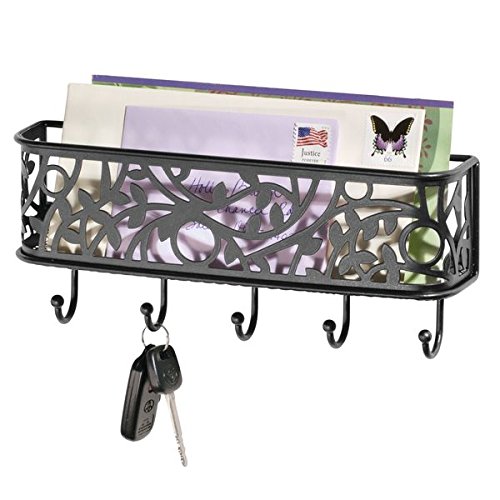 MULTIPLE STORAGE OPTIONS: Letter Holder Organizer features a top basket for storing and organizing letters and mail items, plus 5 storage hooks for keys