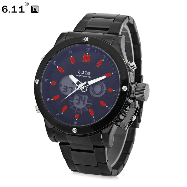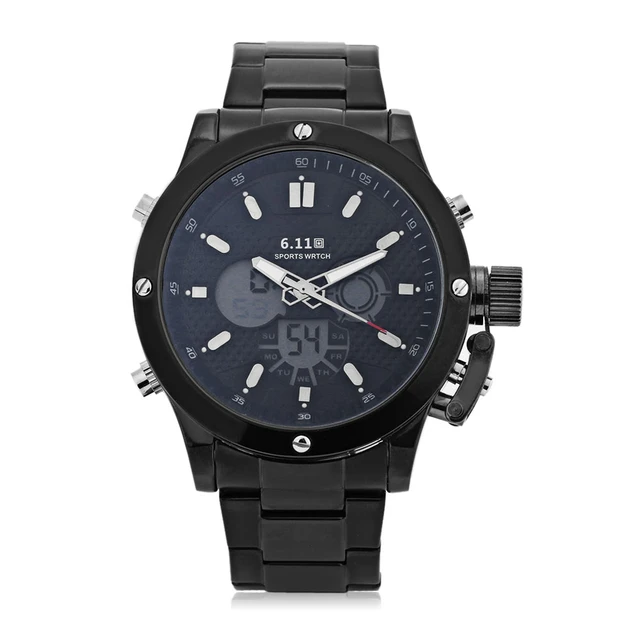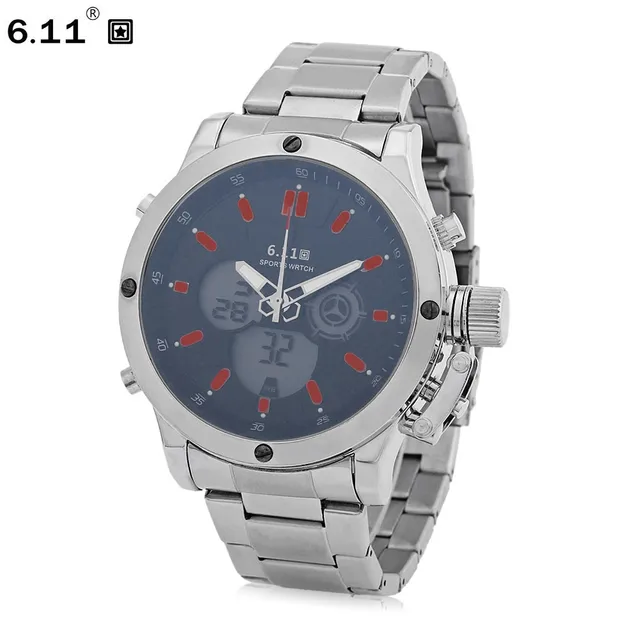 | [해외] 6.11 남성 스포츠 시계 더블 Movt 일 디스플레이 백라이트 스톱워치 알람 손목 시계 |