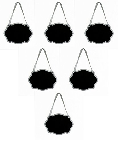 6pc 5.5 x 3.7-inch Oval Scroll Chalkboard Sign Message Board with Hanging String for Kitchen Pantry, Kids Crafts and Wall Décor (Silver)