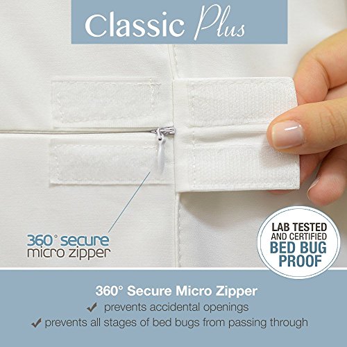 -. Feature : Independently lab tested and certified bed bug entry, escape and bite proof / Encases the mattress on all 6 sides against bed bugs while protecting the surface against dust mites, bacteria, fluids, perspiration and urine / Exclusive Micro-Zipper technology prevents all stages of bed bugs from passing through the zippers teeth / 360 Secure zipper closing feature prevents accidental openings by sealing the end zipper traveler with a Velcro flap / 3-year full replacement warranty and machine washable (registered with the FDA as a class 1 medical device)