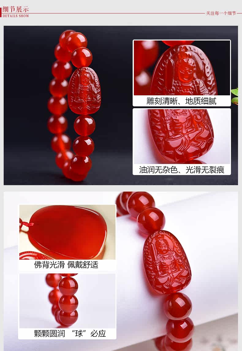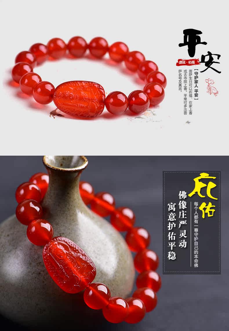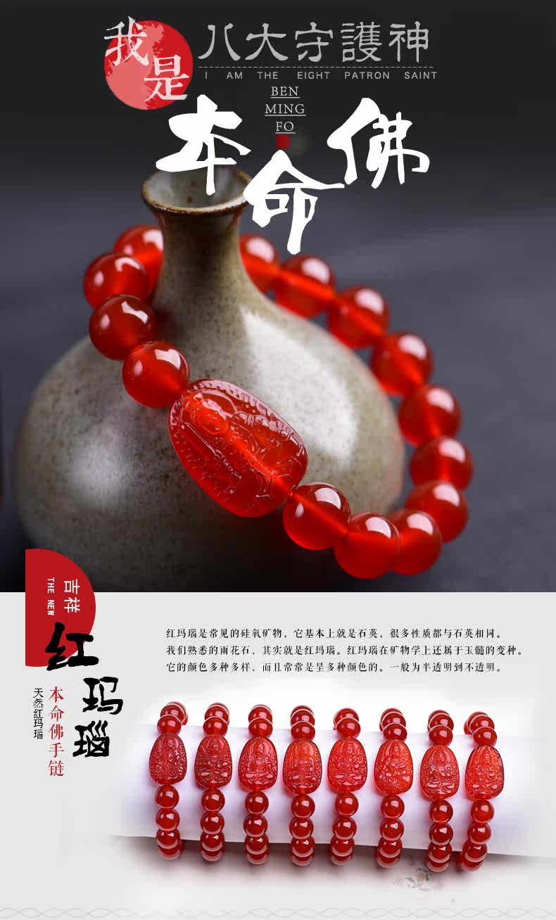 开光十二生肖本命佛红玛瑙手串 不动尊菩萨属鸡手链守护神男女款