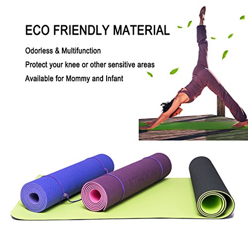 Yoga Is A Life. YOU WILL ENJOY THE YOGA PERFECTLY BY PREMIUM QUALITY YOGA MAT. WHY CHOOSE ATHOON YOGA MAT? ?1.NON SLIP: Double-sided non-slip surfaces for superior slip resistance. Each side has a raised texture to provide the grip needed, you just enjoy yoga or pilates in a more Balanced Safer Way at Home and Gym.? ?2.ECO FRIENDLY: Unlike Cheap PVC mat, the EKO TPE YOGA Mat is Non toxic, Recyclable and Moisture-proof would be a Safe and Peace use for Womens, Mens, Kids and Adults. ?3.DURABILITY LONGEVITY: We never compromise on quality. Our high performance products are designed to withstand the test of time to help improve and enhance your practice. ?4.SOFT YOGA MAT PAD: This high density mat provides the perfect amount of cushioning to support your joints without getting that "sinking" feeling. It's especially ideal for slow-paced Kundalini or Restorative Yoga and for anyone with back pain or knee problems. ?5.PROFESSIONAL: 6MM Thin Yoga Mat with High-density, Great Supporting and Quick Spring-back is Suitable for Various Yoga Movements, offers the Softest Experience for all Level Yogis. ?6.MULTIFUNCTION: As its good cushion, high elasticity and resilience, the mat is great for Hot Yoga, Aerial yoga, Ashtanga yoga, Iyengar yoga, Bikram Yoga, hatha yoga, yin yoga, dharma yoga, P90x, Pilates, Meditation, Fitness and other exercise routines. ?7. HYGIENIC EASY TO CLEAN: The Yoga Mat uses closed-cell technology, prevent sweat dirt from penetrating its surface so your mat stays germ and odor-free. To clean, just wipe down or wash with mild soap and water and let air dry. ?8.PACKAGE: 1 - ATHOON TPE Yoga Mat, 1-Yoga Mat Carrier Sling, 1- Yoga Strap (FREE GIFT), 1 - Yoga Bag.With the bag, it's easy to carry as travel yoga mat. Our YOGA MAT could meet your all basic needs.COME ON, ORDER TODAY, RISK FREE! 0 |