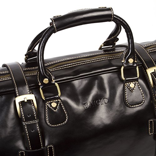-. Brand : BAIGIO -. Color : Brown -. Department : mens -. Feature : Dimensions: 17.6"L x 8.4"W x 10.5"H. Genuine leather duffel bag for overnight or 2-3 days business trip / Top 'U' shape zip opening, joining hook-and-loop top handles; Removable and adjustable shoulder strap with thickened pad / Come with matched lage tag. Fill in the name tag or insert your business card. Perfect gift for frequent travelers / Inside laptop compartment fit for 14" laptop, smart contrast stitching and canvas lining;5 Brass stand feet on the bottom for protection. Brass hardware. Quality zipper of fluent and smooth. / free gift PU leather pencil case, get promotion code below -. Model : 352044 -. PackageQuantity : 1 -. ProductGroup : Apparel -. ProductTypeName : LAGE -. Size : 17.6''l x8.4''w x10.5''h -. Title : Baigio Men's Brown Genuine Leather Weekend Travel Duffel Overnight Bag Gym Bags