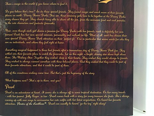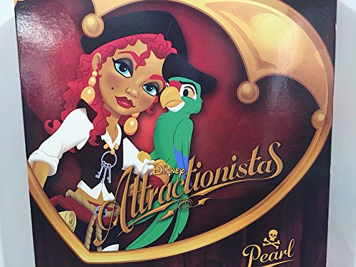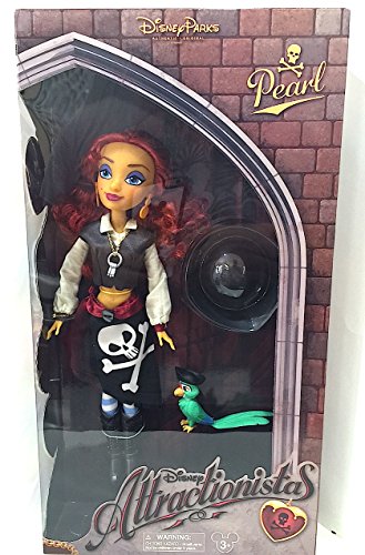 -. Binding : Toy -. Brand : Disney -. Feature : 12" Poseable fashion doll / Detailed costume with faux leather bodice / Satin trims / Includes pet Jolly Rodger the parrot figurine / Disney Theme Park Authentic -. IsAdultProduct : 0 -. Label : Disney -. Manufacturer : Disney -. MPN : na -. PackageQuantity : 1 -. PartNumber : na -. ProductGroup : Toy -. ProductTypeName : TOYS_AND_GAMES -. Publisher : Disney -. Studio : Disney -. Title : Disney Parks Attractionistas Pearl Pirates of the Caribbean 12 in Doll w Parrot