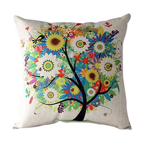 Onker Cotton Linen Square Decorative Throw Pillow Case Cushion Cover 18" x 18" Colorful Pastoral Style Tree of Life