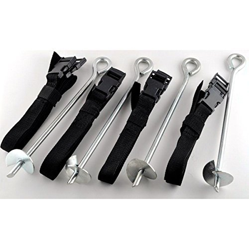 Studio : Trampoline Publisher : Trampoline Binding : Toy Product Description These anchors are easy to assemble! Just screw the steel anchor into the ground, connect the strap to the Loop on the anchor and to the trampoline frame, use the adjustable buckles according to your preferences and to the height of your trampoline. Simple Easy Attachment. Keeps your trampoline safe in place while your kids are jumping!. Save your big investment with this small and everlasting investment. 0