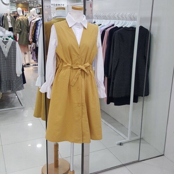 셔츠세트 벨트주름 원피스입니다 깔끔한 디자인에 데일리로 입으시기 여성스런 스타일입니다