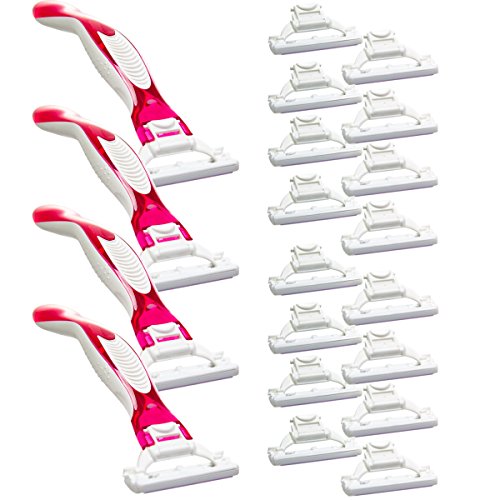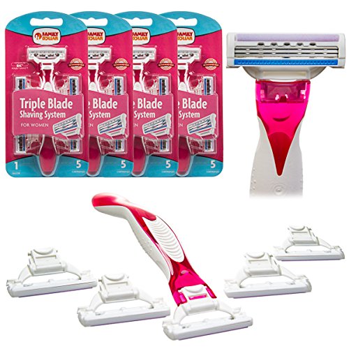 Womens Triple Blades 4 Handles 20 Replacement Cartridges Safety Razor Disposable Bulk Pack