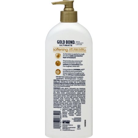 Studio : Gold Bond Publisher : Gold Bond Binding : Misc. Product Description Gold Bond Ultimate Softening Skin Therapy Lotion with shea butter coconut oil cocoa butter replenishes conditions rough skin leaving it silky smooth. Gold Bond Ultimate Softening Skin Therapy Lotion with shea butter, Coconut Oil, Cocoa Butter, 20 Oz 0