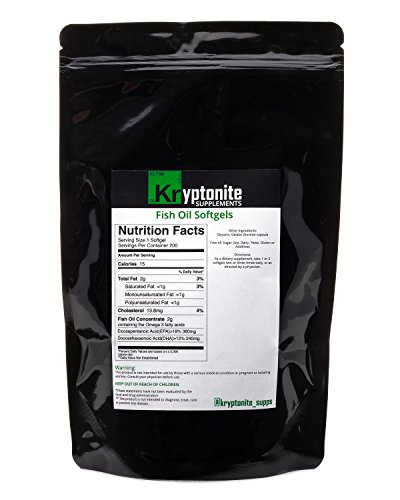 -. Title : Kryptonite Supplements Omega 3 Fish Oil, Burpless, Non-GMO,NPA-GMP, HACCP, ISO9001 Certified, 200 Count, 1000mg per serving