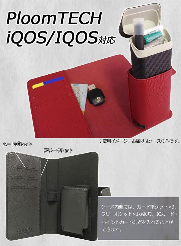 電子タバコ「PloomTECK(プルームテック)」「iQOS/IQOS(アイコス)」にお使いいただける手帳型ケースです。3つのカード入れ+フリーポケットがあり、収納力抜群!!マグネット式ベルトで開閉がスムーズに行えます。 |