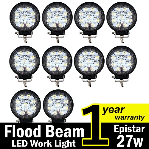 TMH® 27w Round Shape 60 Degree LED Work Light Flood Beam Spot Lamp Driving Light, Jeep, Off-road, 4wd, 4x4, Utv, Sand Rail, Atv, Suv, Motorbike, Motorcycle, Bike, Dirt Bike, Bus, Trailer, Truck, Train, Mining Truck, Excavator, Bulldozer, Crane, Road Rolle