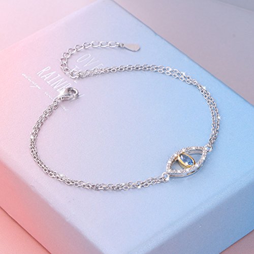 Two Tone 925 Sterling Silver Jewelry Evil Eye Bracelet For Women