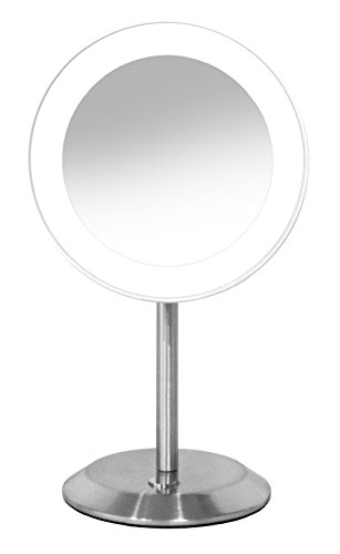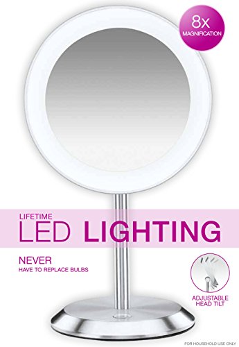 Conair Single-Sided Lighted Makeup Mirror - Lighted Vanity Makeup Mirror with LED Lights; 8x magnification; Satin Chrome Finish