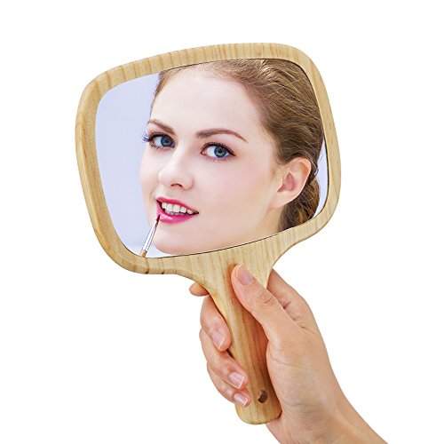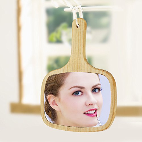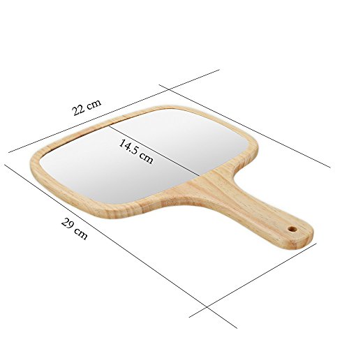 Handmade Wooden Hand Mirror Women Makeup Mirrors, Vintage Portable Hanging Handle Mirrors (L)