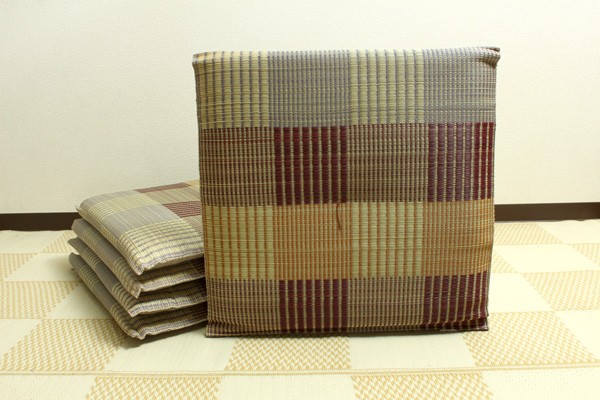 柔らかい肌感触のイ草座布団です。メセキ織という技法で柔らかい肌感触に仕上げました。国産(九州産)のい草を使用しています。一本一本が太く、表皮が厚く繊維がキメ細かいので弾力性があり、耐久性に優れています。い草には空気の自然浄化作用、湿度の調節作用などがあります。また汚れにくく、使用するうちに黄金色に変化し味が出ます。い草に青森ヒバ加工を施しています(抗菌、防臭効果)。中材はウレタンをポリエステルわたでサンドした三層構造で、適度なクッション性があります。