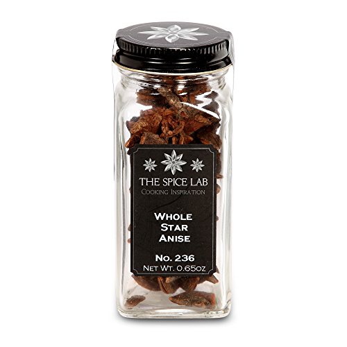 -. Binding : Grocery -. Brand : The Spice Lab -. Feature : IDEA: Our Whole Star Anise adds visual interest and the strong, sweet, licorice-like flavor of anise to recipes, and can also be used as a garnish. / FLAVOR: Herbaceous licorice flavor. / TEXTURE: Star-shaped pods. Red to brown color. / SIZE: Approximately 3/4 to 1-1/2 inches wide. -. IsAdultProduct : 0 -. Label : The Spice Lab -. Manufacturer : The Spice Lab -. PackageQuantity : 1 -. ProductGroup : Grocery -. ProductTypeName : GROCERY -. Publisher : The Spice Lab -. Studio : The Spice Lab -. Title : The Spice Lab No. 236 - Whole Star Anise - All Natural Kosher Non GMO Gluten Free