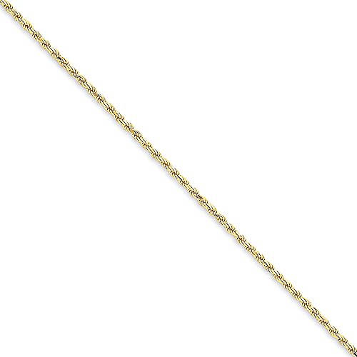 14k 1.6mm Solid Diamond-cut Machine-Made with Lobster Rope Chain. Material: Primary - Purity:14K|Chain Length:9 in|Chain Type:Rope|Chain Width:1.6 mm|Clasp /Connector:Lobster|Feature:Solid|Manufacturing Process:Die Struck|Material: Primary:Gold|Product Type:Jewelry|Jewelry Type:Anklets|Sold By Unit:Each|Anklet Type:Chain Styles|Texture:Diamond-cut|Material: Primary - Color:Yellow|Manufacturing Process 2:ExtrudedFeature