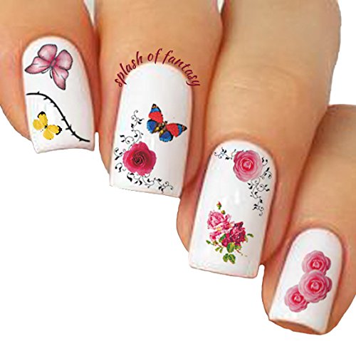 -. Feature : WATER SLIDE NAIL TATTOOS: 5 sheets with assorted designs of colorful butterflies and flowers: Marigold, Carnation, Gerber, Camellia, Rose / VERSATILE & VERY EASY TO USE - with brilliant looking results. Can be used on natural, false, gel, acrylic or stick on nails! Have your nails done in minutes and last for up to 2 weeks / LONG LASTING - tattoos will last for weeks or as long as your polish stays on! / INSTRUCTIONS INCLUDED - For application refer to instructions on the back of the package or below / MIX, MATCH AND HARMONIZE