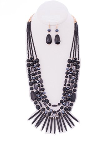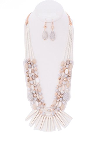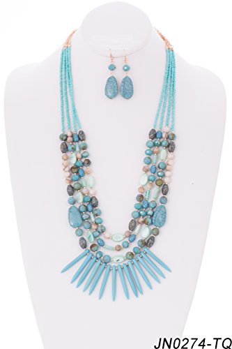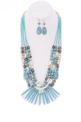 WOMEN'S FASHIONABLE GEM STONE N BEAD LONG NECKLACE AND EARRINGS SET